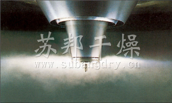 空氣經過濾和加熱,進入干燥器頂部空氣分配器,熱空氣呈螺旋狀均勻地進入干燥室。料液經塔體頂部的高速離心霧化器,(旋轉)噴霧成極細微的霧狀液珠,與熱空氣并流接觸在極短的時間內可干燥為成品。成品連續地由干燥塔底部和旋風分離器中輸出,廢氣由風機排空。
